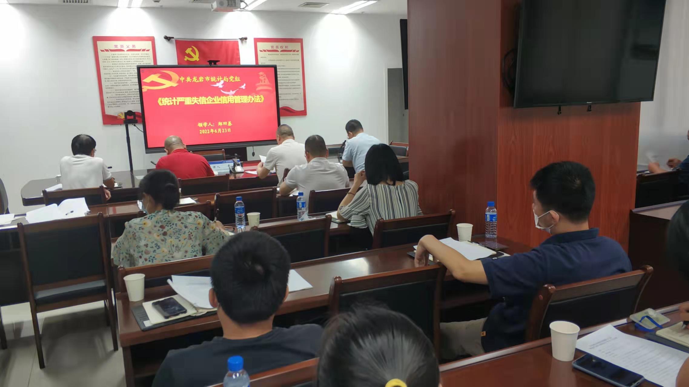 一是组织专题学习《统计严重失信企业信用管理办法》。6月23日,龙岩市统计局召开党组理论学习中心组(扩大)学习会专题学习了《统计严重失信企业信用管理办法》(国家统计局令第35号)文件精神,切实推进统计领域诚信建设,规范统计严重失信企业信用管理。