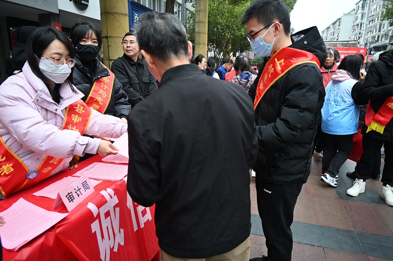 活动现场,志愿者们通过张贴横幅,向过往群众赠阅《中华人民共和国宪法》《中华人民共和国民法典》《中华人民共和国审计法》、诚信建设等宣传材料,设立咨询台现场讲解等方式,引导居民群众增强宪法观念,提升诚信意识。同时进入沿街商铺,向商户经营者们普及诚信经营的法律知识,进一步提升经营者法律意识,自觉诚信守法经营。现场共发放各类宣传材料300余份。